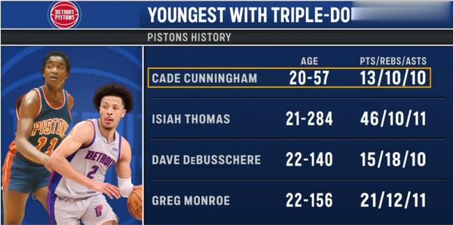 康宁汉姆也成为活塞史上打出三双最年轻的球员。