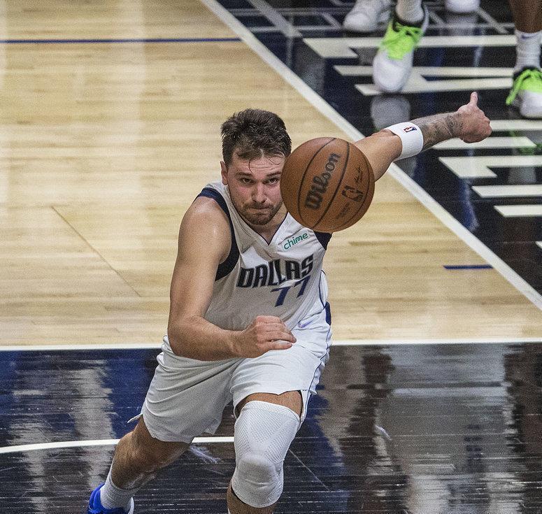比赛进行到第三节,独行侠球星卢卡-东契奇左小腿受伤,他一瘸一拐地径直回到了更衣室。
